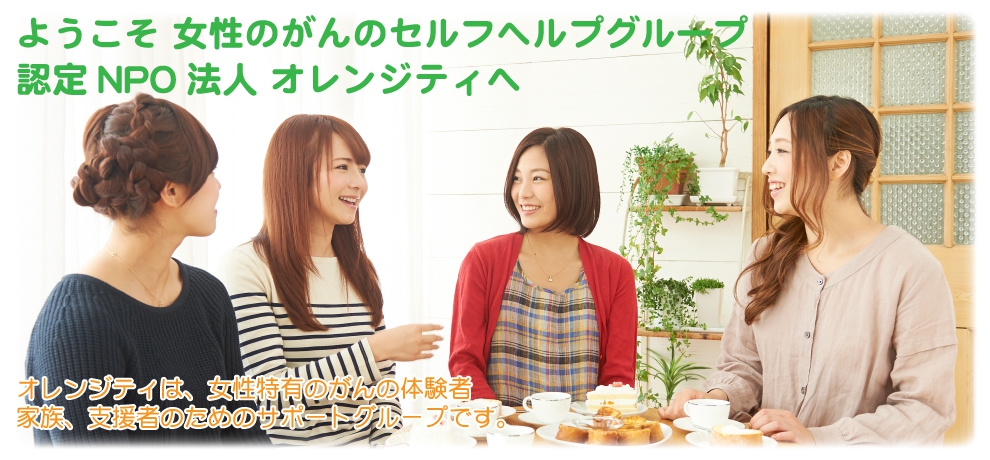 オレンジティは、女性特有のがん(婦人科がん、乳がん)体験者を応援する自助グループです。